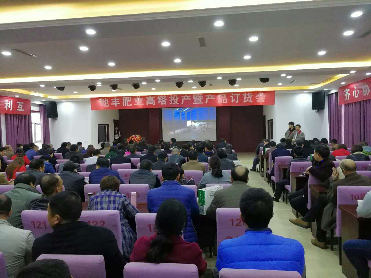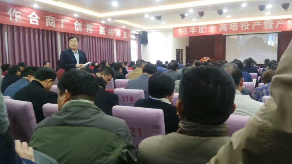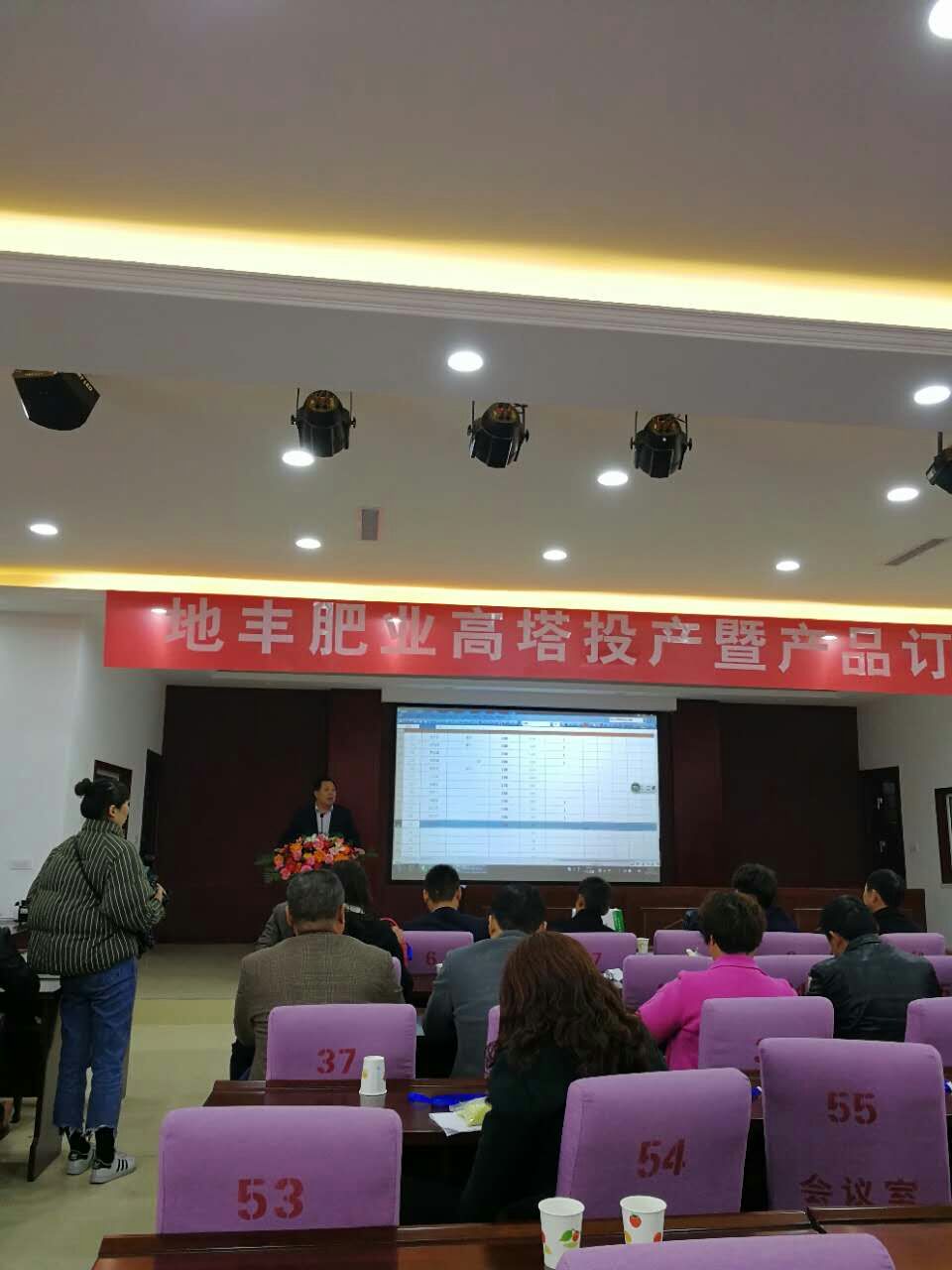 參觀高塔造粒項目后,在焦作市地豐肥業(yè)有限公司三樓多媒體會議室舉行高塔產(chǎn)品訂貨會,大家濟濟一堂,共話營銷新模式,齊心協(xié)力實現(xiàn)互利共贏新合作。