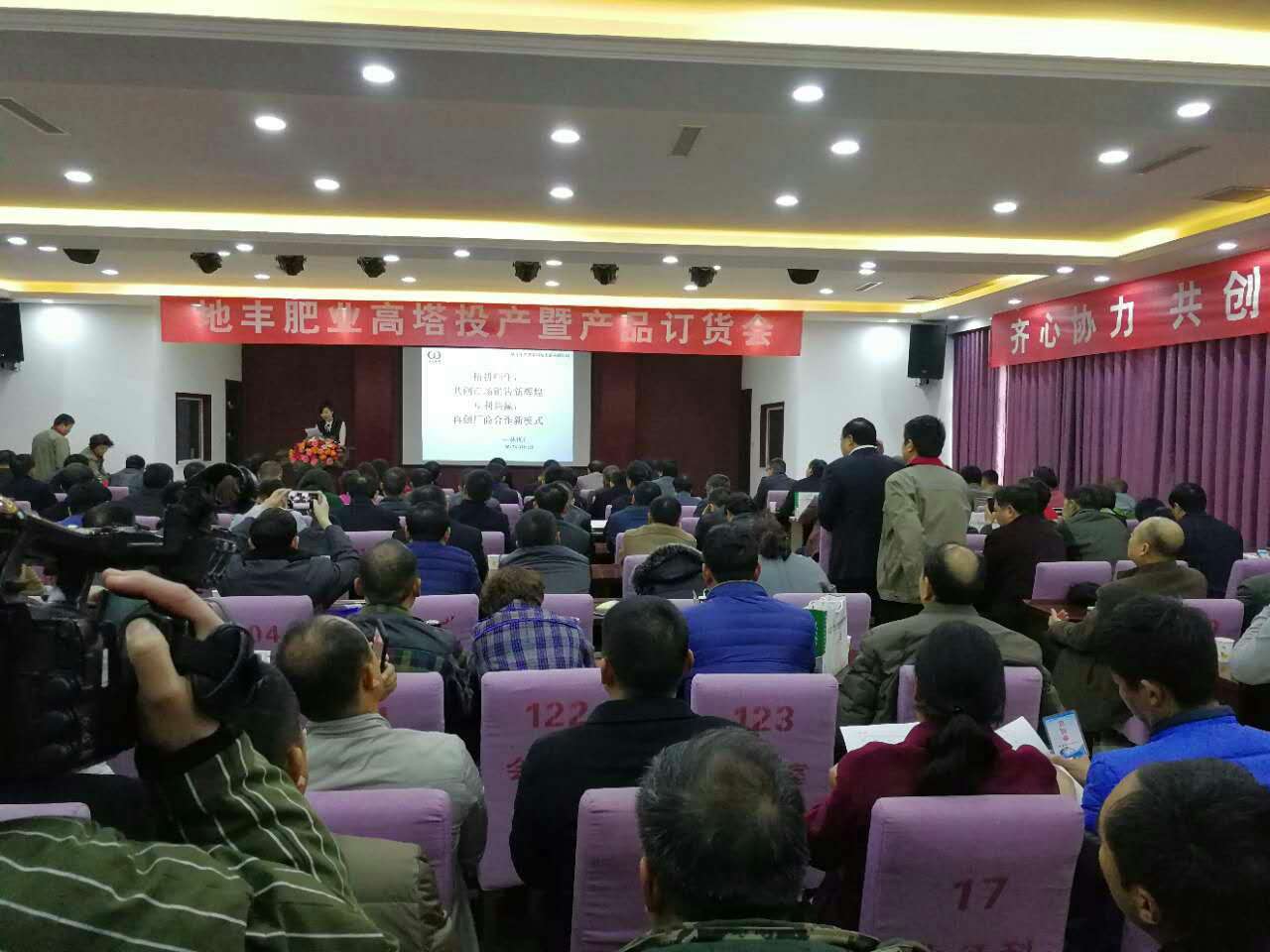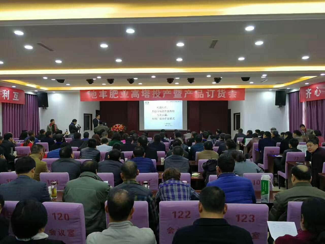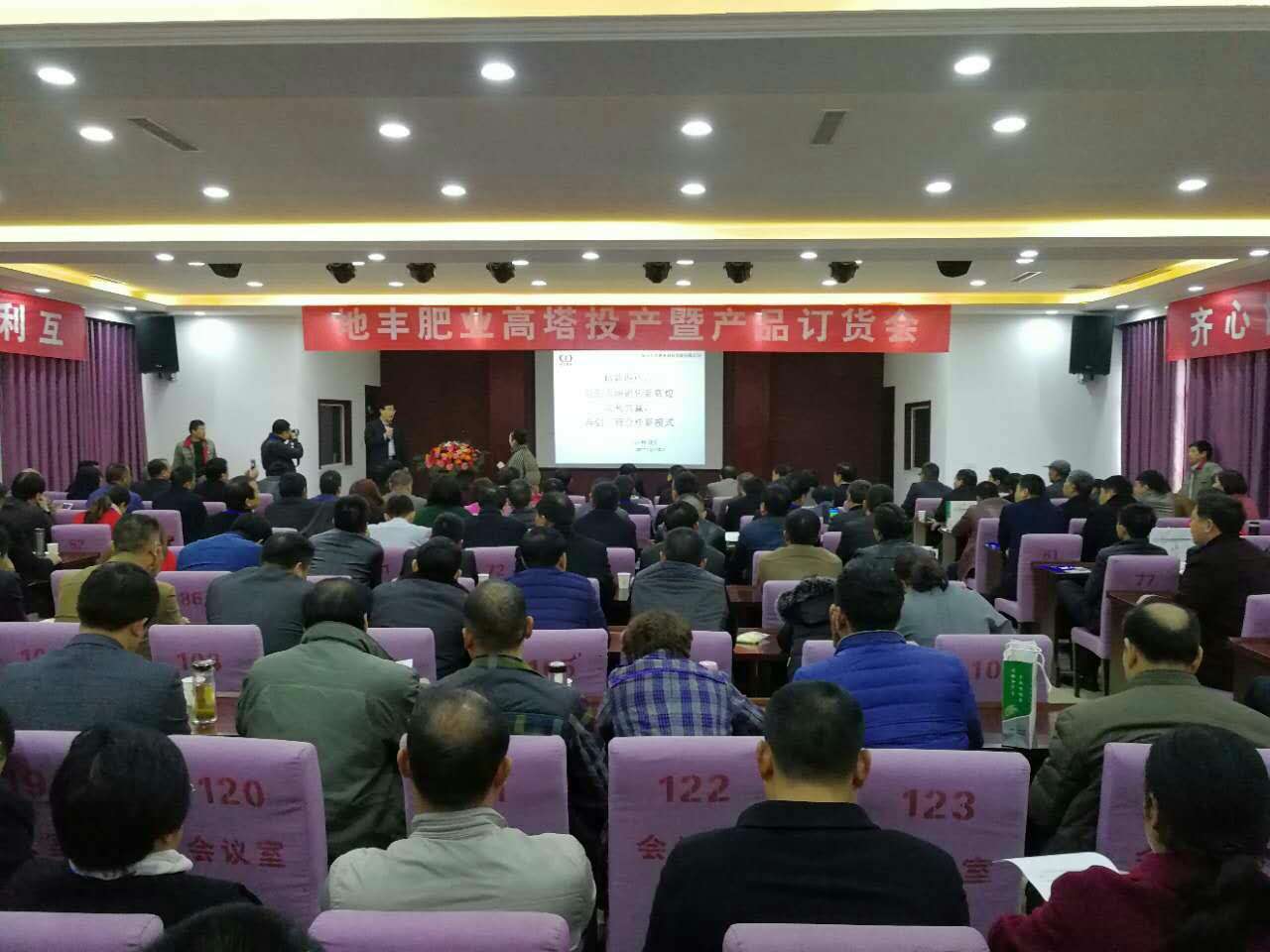 參觀高塔造粒項目后,在焦作市地豐肥業(yè)有限公司三樓多媒體會議室舉行高塔產(chǎn)品訂貨會,大家濟濟一堂,共話營銷新模式,齊心協(xié)力實現(xiàn)互利共贏新合作。