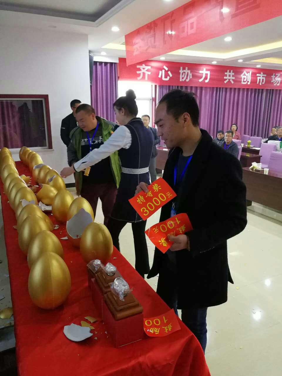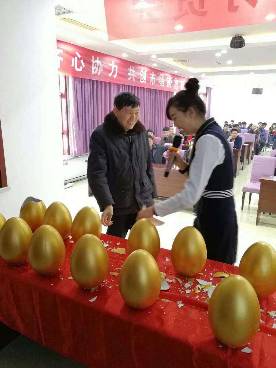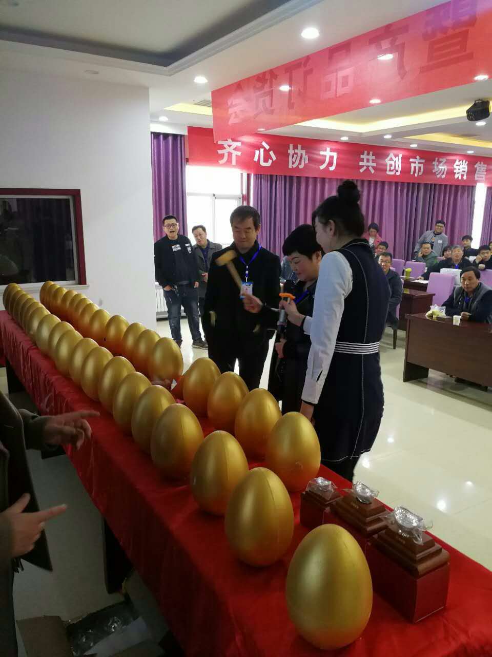 砸金蛋、搶元寶,公司退出一系列優(yōu)惠活動,各經(jīng)銷商看了心動不已,都積極踴躍參與進搶購高塔產(chǎn)品活動中,大家自覺排隊簽約,場面火爆不已......